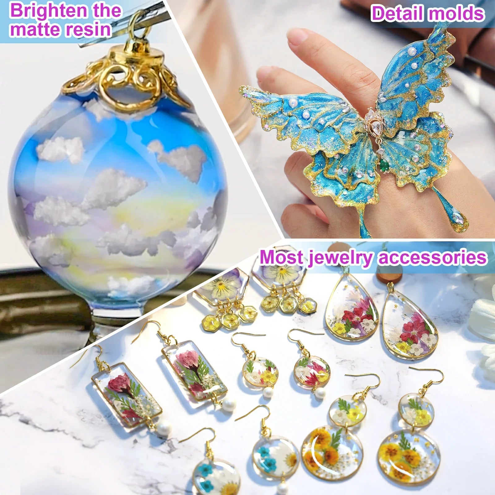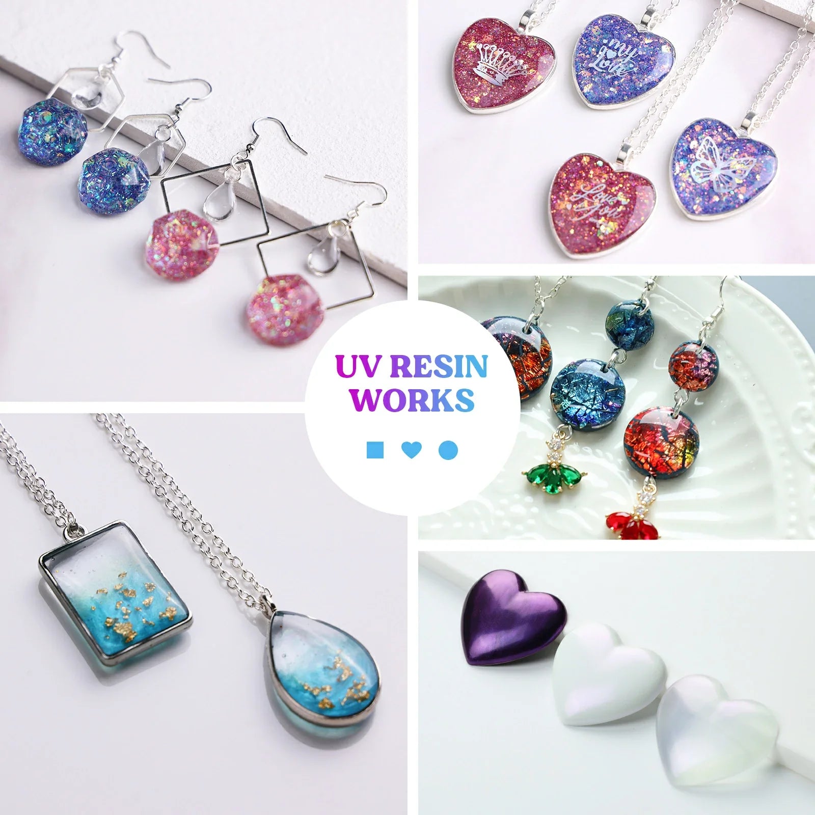 - Strong compatibility and low shrinkage: The shrinkage of LET'S RESIN UV resin is less than 2%. It also has perfect high compatibility and can be mixed with pigments, dried flowers, powders, glitters and other materials to make all kinds of exquisite jewelry, very suitable for decorating your room, books, table tops, etc.