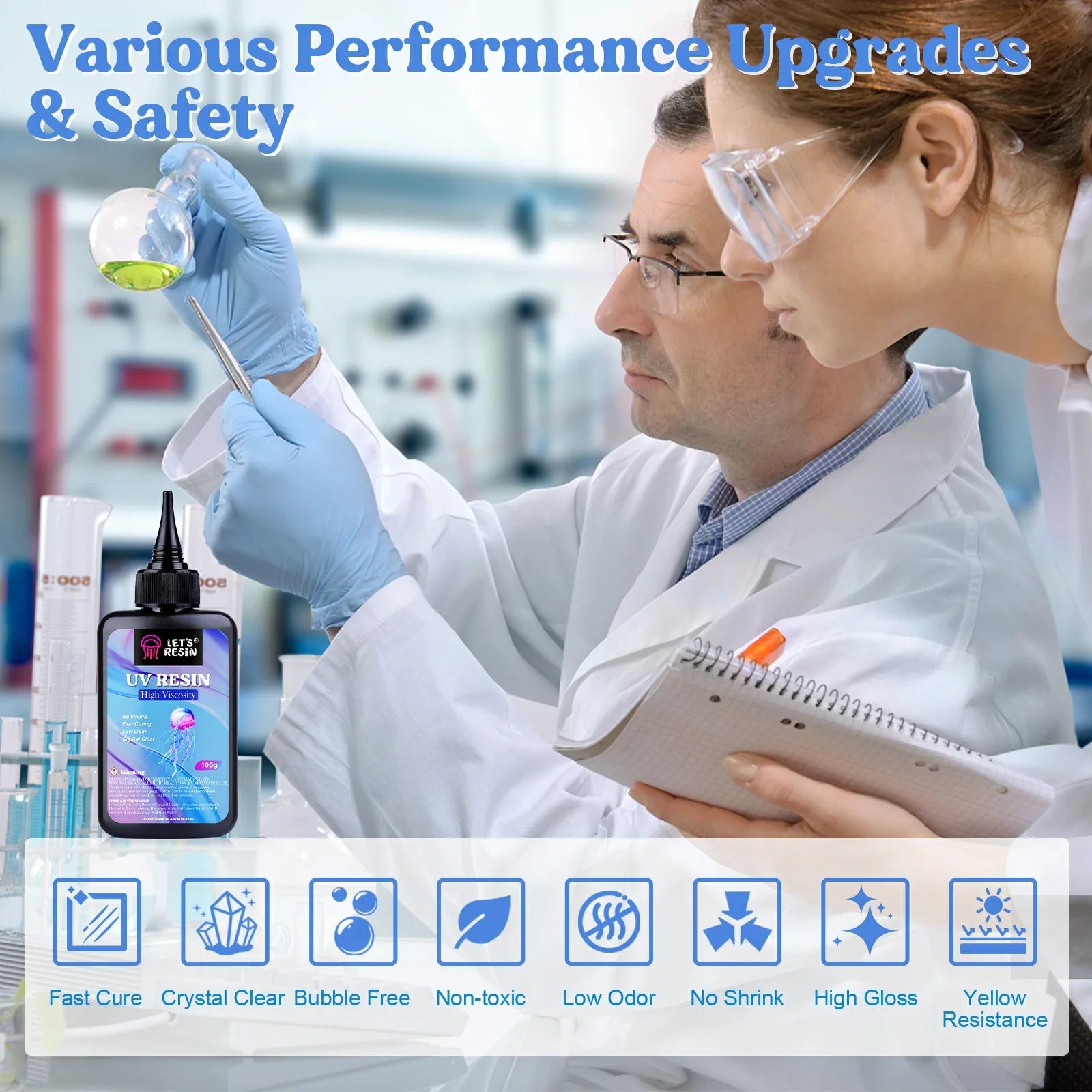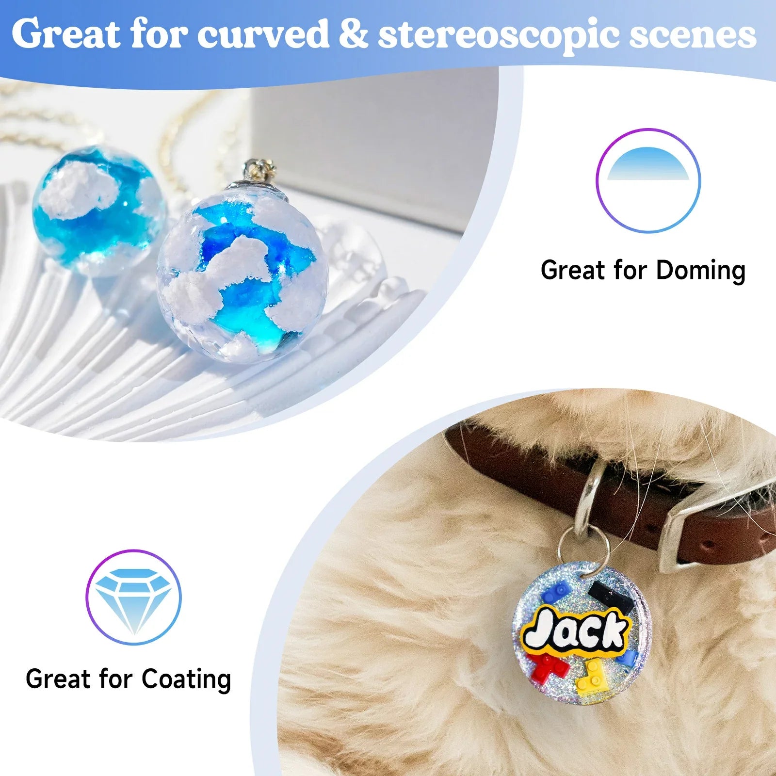 - Safe formula and easy to use: the soft UV glue formula has been tested and upgraded many times, with SDS safety standards. Our glue outlet is well packaged, no leakage, no mixing, smooth glue outlet, self-leveling, mild smell, yellow persistence, you can enjoy the handmade process. It is normal for UV epoxy resin to release gas as it begins to cure. For safety, we recommend wearing a mask and gloves when using them.