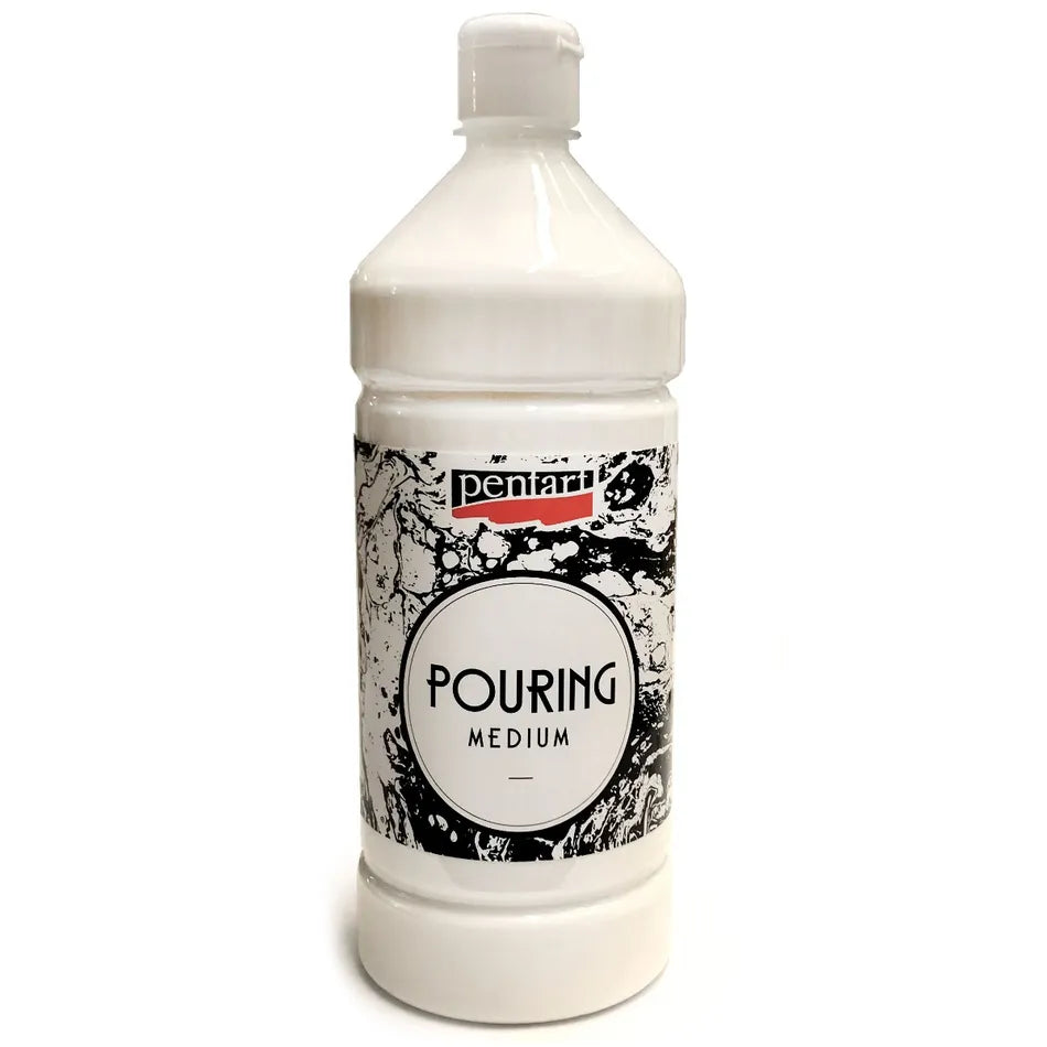 Akrylmedium för att tunna ut akrylfärg utan att ändra kulör eller täckningsgrad. Vid fluid painting tillåter pouring medium färgerna att rinna och flyta ut, utan att blanda sig med varandra alltför mycket. Du kan även blanda i några droppar silikonolja i färgen. Då bildas intressanta celler i färgen när den flyter ut.